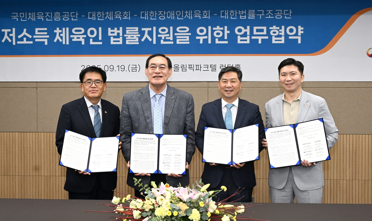 체육회·진흥공단·장애인체육회·법률구조공단, 저소득 체육인 법률 지원 협력